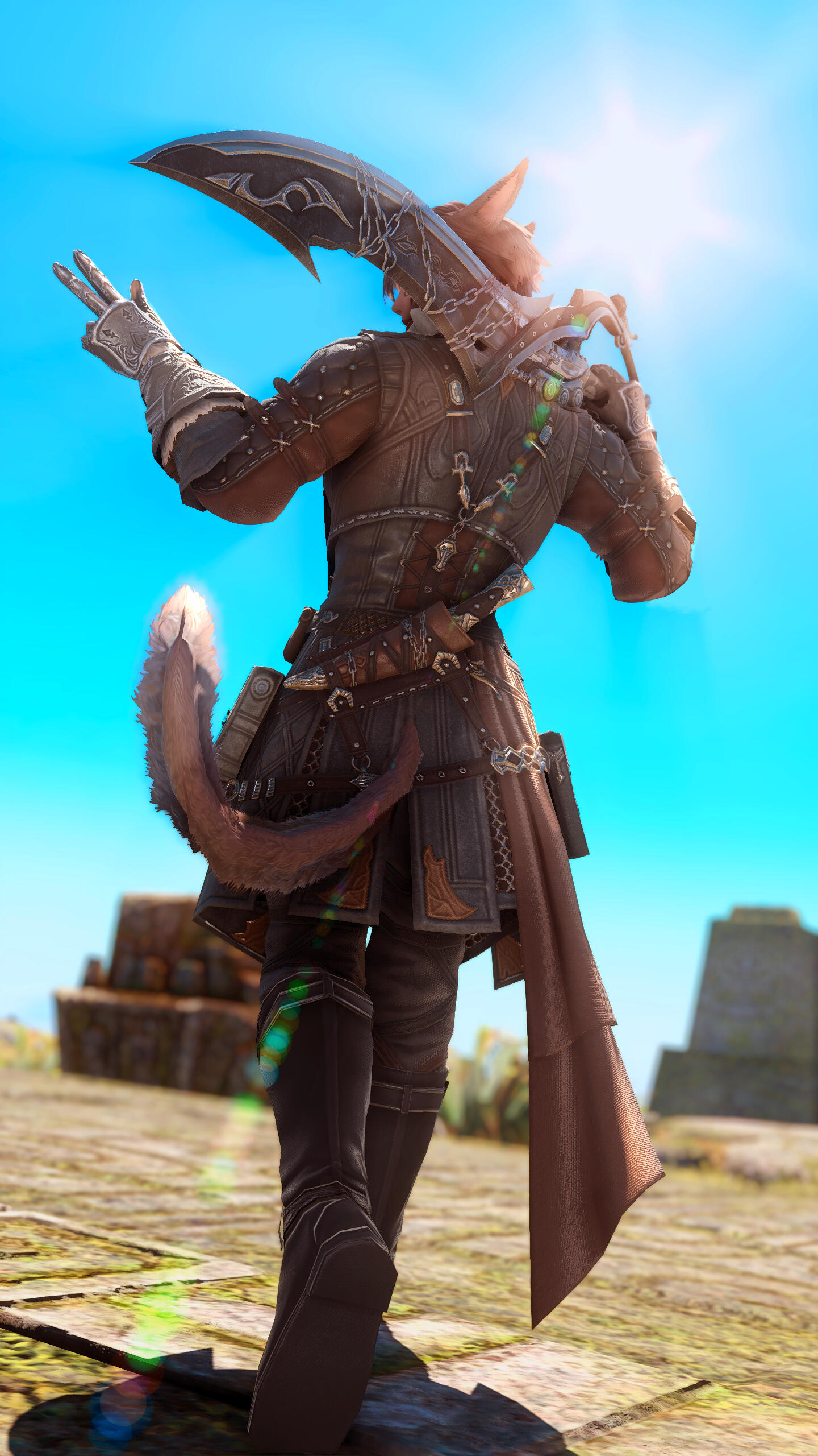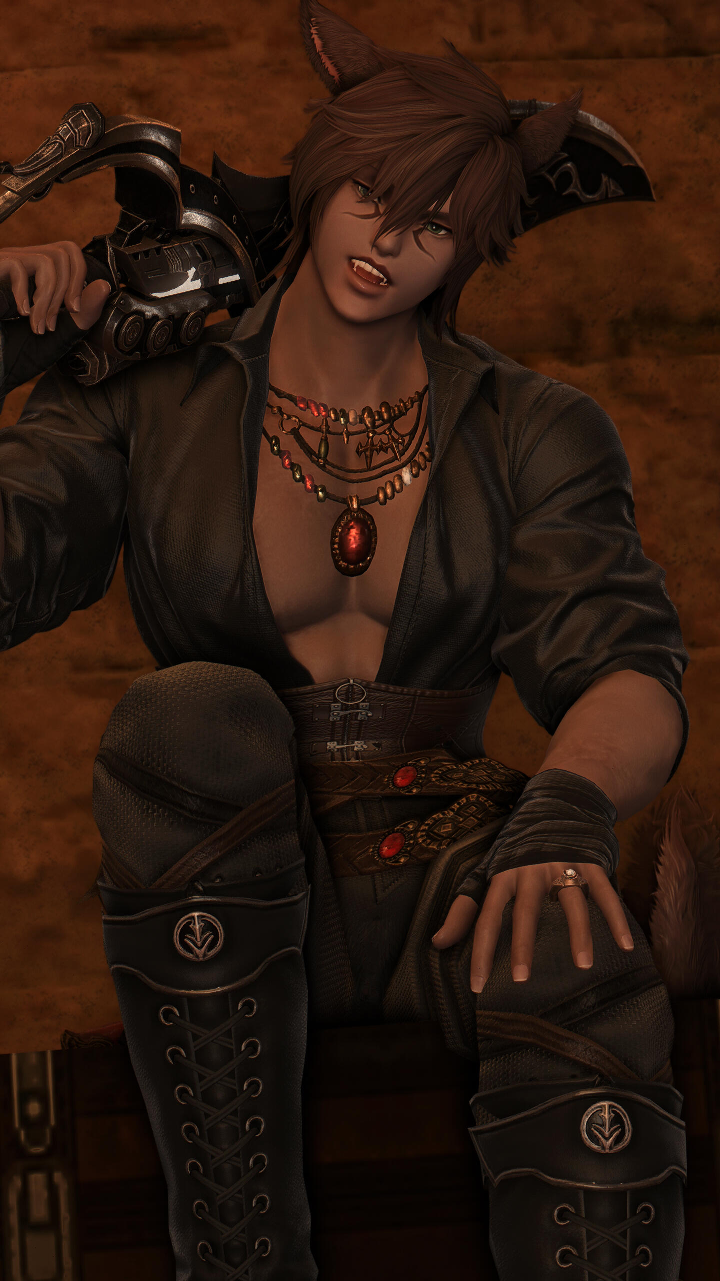Alongside his bloodline, Cassius is taller than the average Miqo'te and has a broad, muscular build from his expeditions on the Bozjan Southern Front.