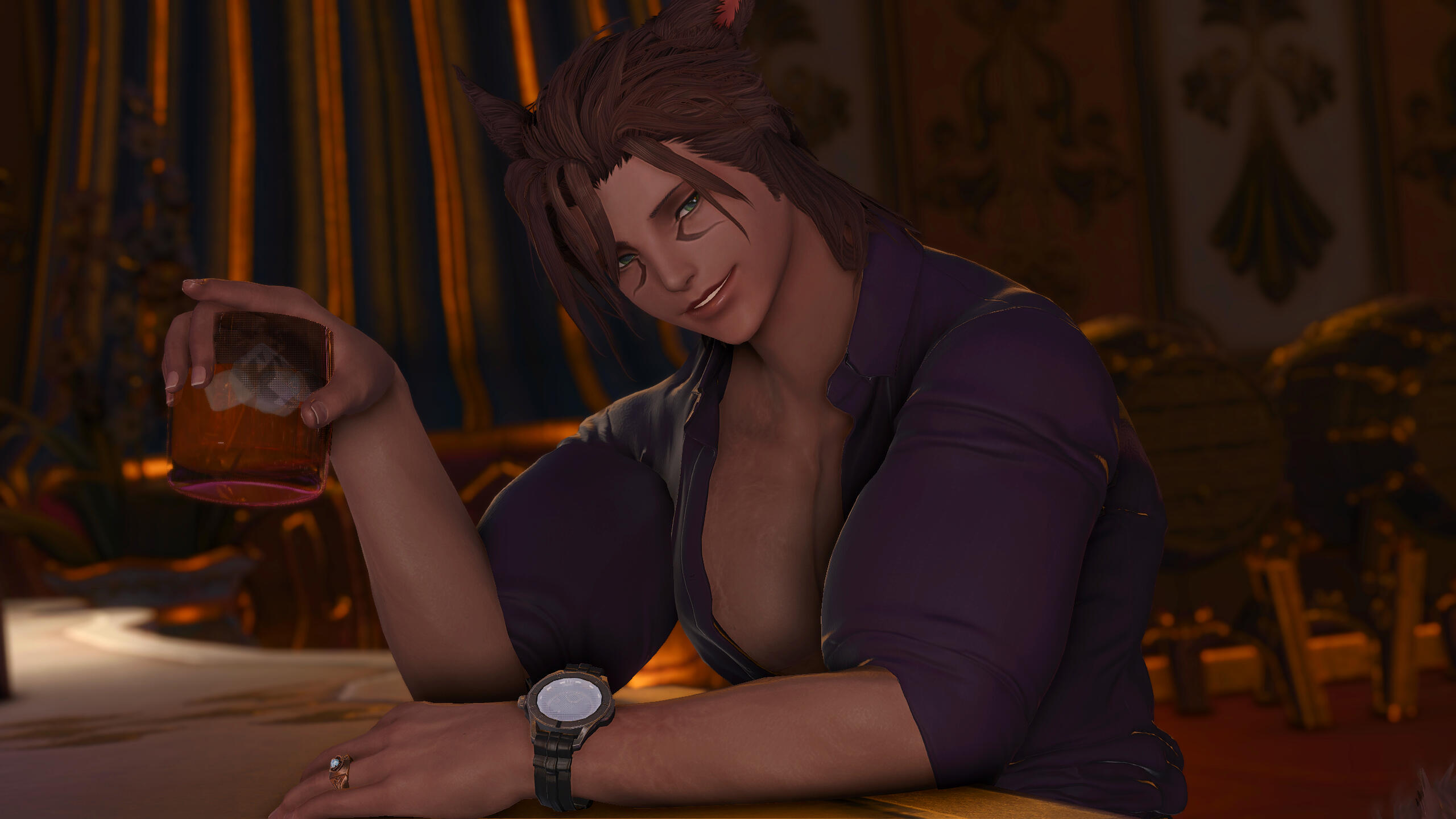"I heard you're also looking for intel on the Empire. What if I told you that I could assist with that?", the stranger pulls up a chair alongside the Miqo'te. "Ah, but where are my manners? The name's Thancred."